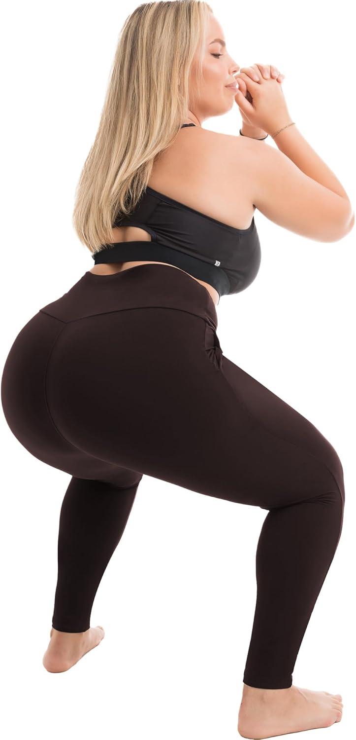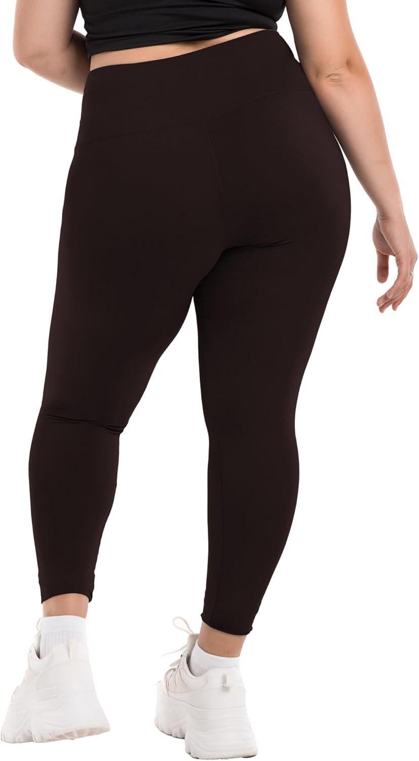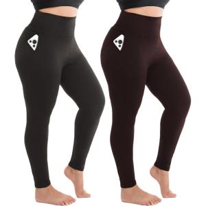 SINOPHANT 2 Pack Plus Size Leggings for Women, High Waisted Buttery Soft Yoga Pants with Pockets for Gym Workout Clothing(Black/Brown)