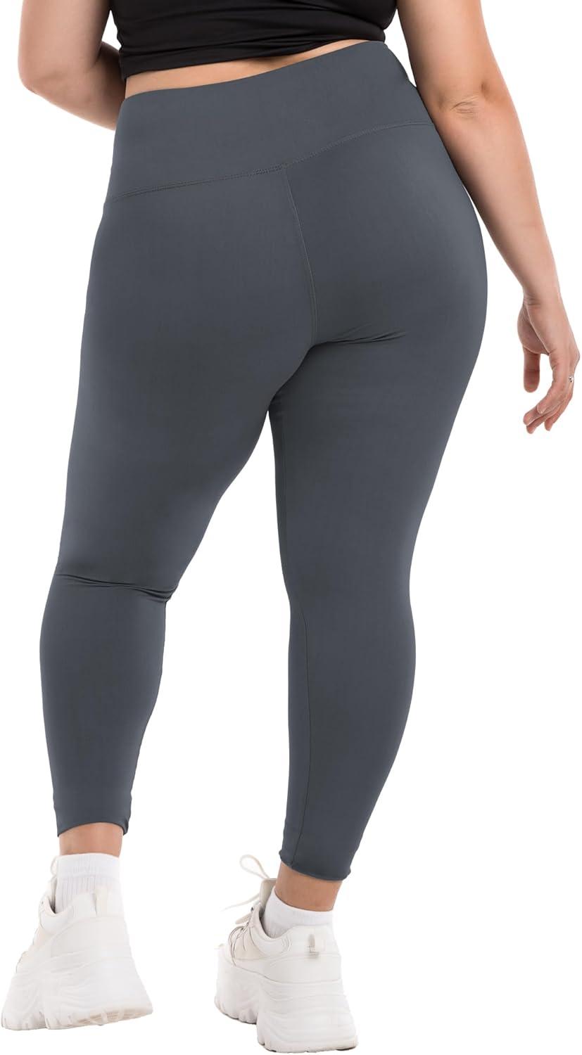 SINOPHANT 2 Pack Plus Size Leggings for Women, High Waisted Buttery Soft Yoga Pants with Pockets for Gym Workout Clothing(Black/Grey)