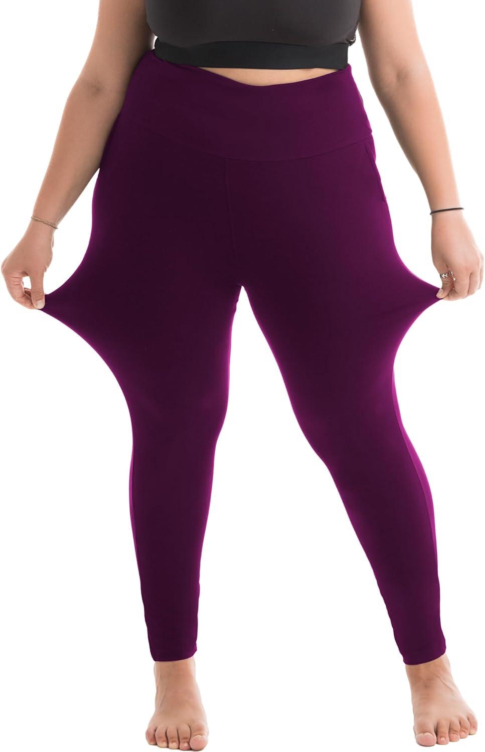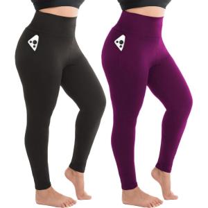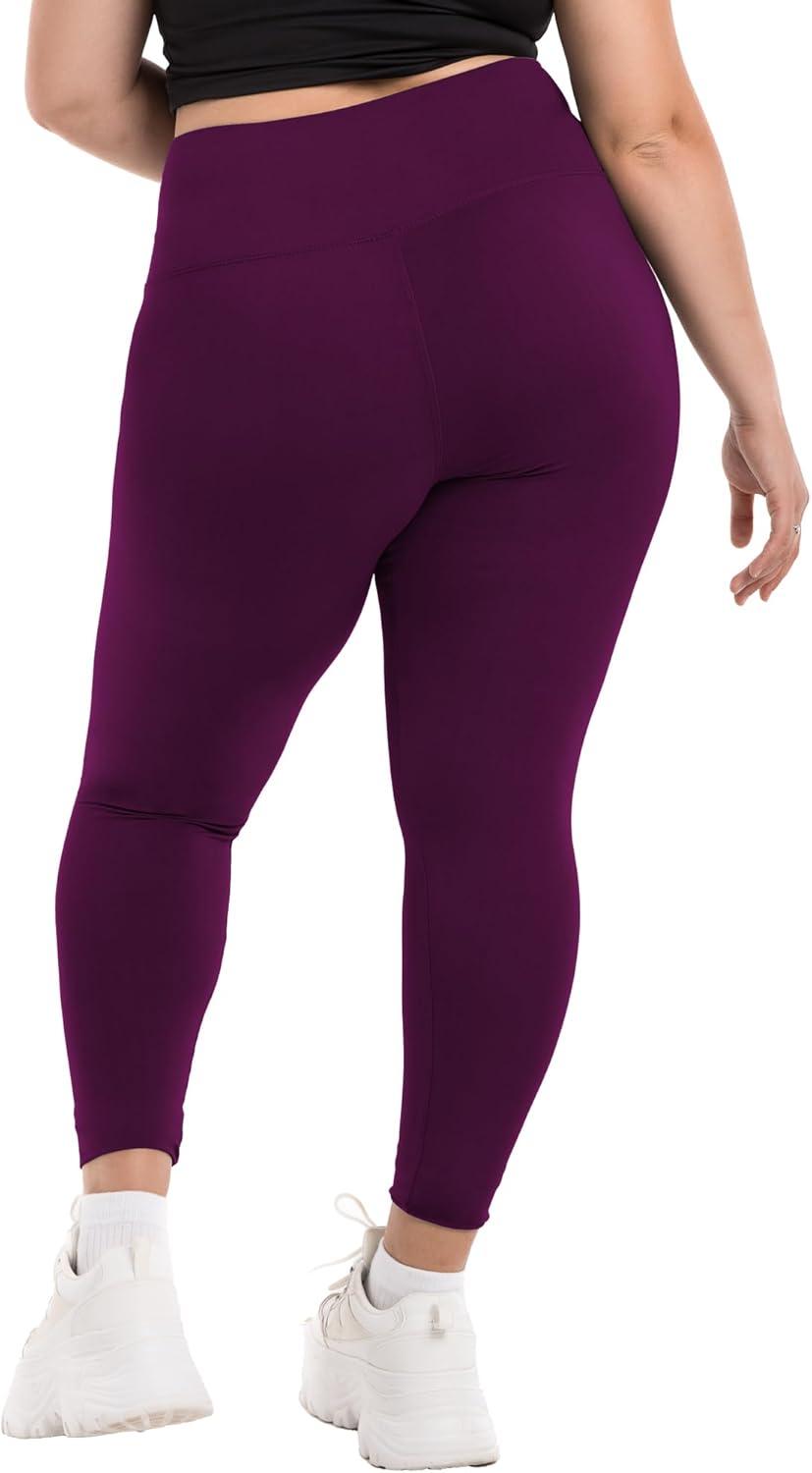 SINOPHANT 2 Pack Plus Size Leggings for Women, High Waisted Buttery Soft Yoga Pants with Pockets for Gym Workout Clothing(Black/Plumpurple)