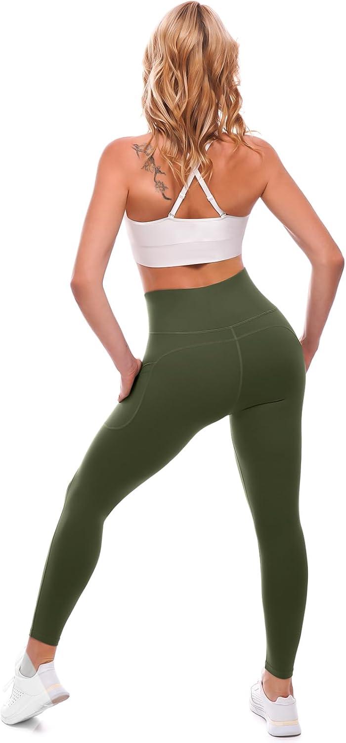 SINOPHANT Thick Yoga Pants Women with Pockets Buttery Soft High Wasited Leggings for Women Workout(Armygreen)