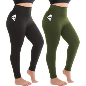 SINOPHANT 2 Pack Plus Size Leggings for Women, High Waisted Buttery Soft Yoga Pants with Pockets for Gym Workout Clothing(Black/Armygreen)