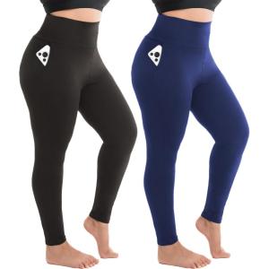 SINOPHANT 2 Pack Plus Size Leggings for Women, High Waisted Buttery Soft Yoga Pants with Pockets for Gym Workout Clothing(Black/Navy)