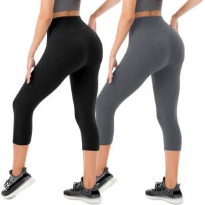SINOPHANT Capri Leggings for Women – 2 Packs Buttery Soft Yoga Pants for Gym Athletic(Black/Grey)