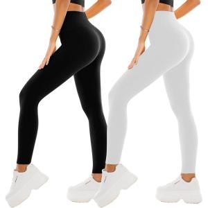 SINOPHANT High Waisted Leggings for Women – 2 Packs Buttery Soft Yoga Pants for Workout Athletic(Black/White)