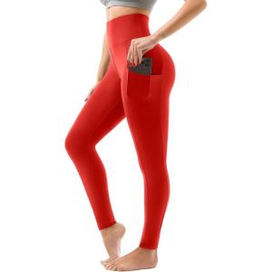 SINOPHANT High Waisted Leggings with Pockets Women, Full Length Capri Buttery Soft Stretchy Yoga Pants(Red)