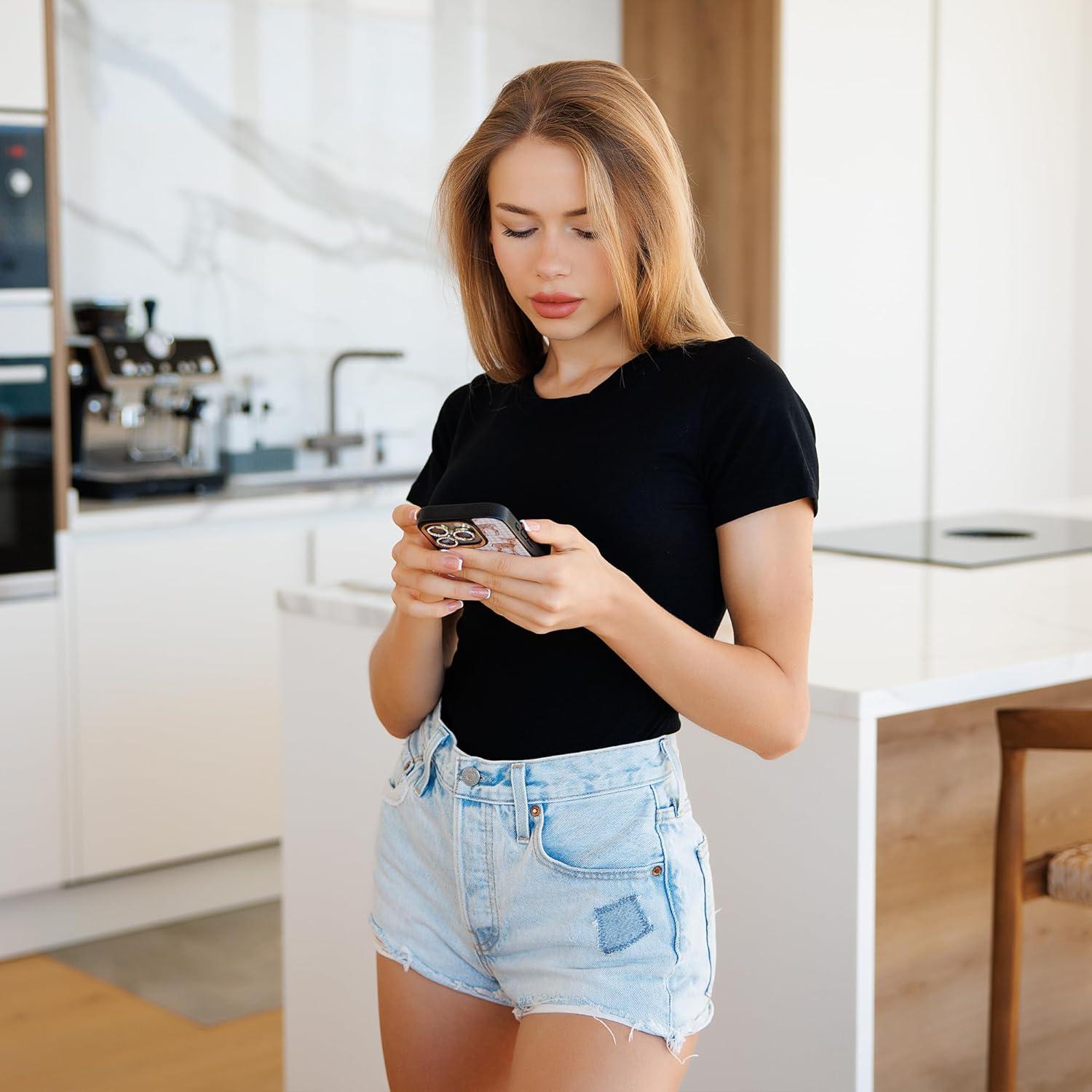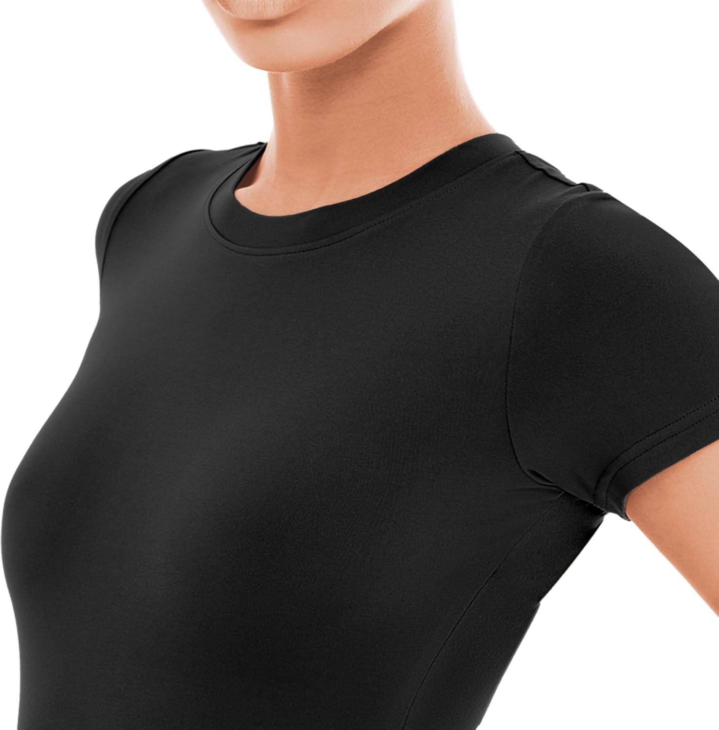 SINOPHANT Bodysuits for Women – Short Sleeve Round Neck Body Suit Stretchy Basic T Shirt Tops(Black)