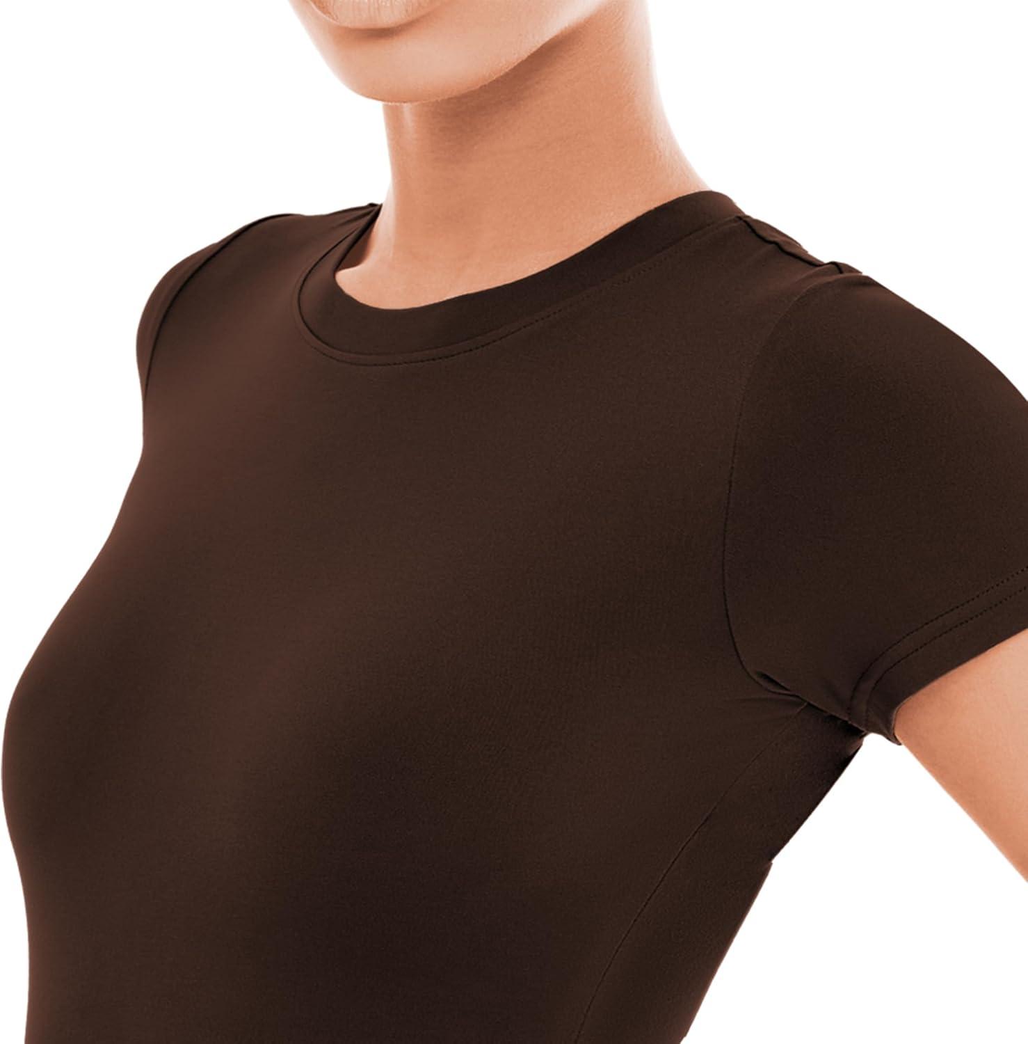 SINOPHANT Bodysuits for Women – Short Sleeve Round Neck Body Suit Stretchy Basic T Shirt Tops(Brown)