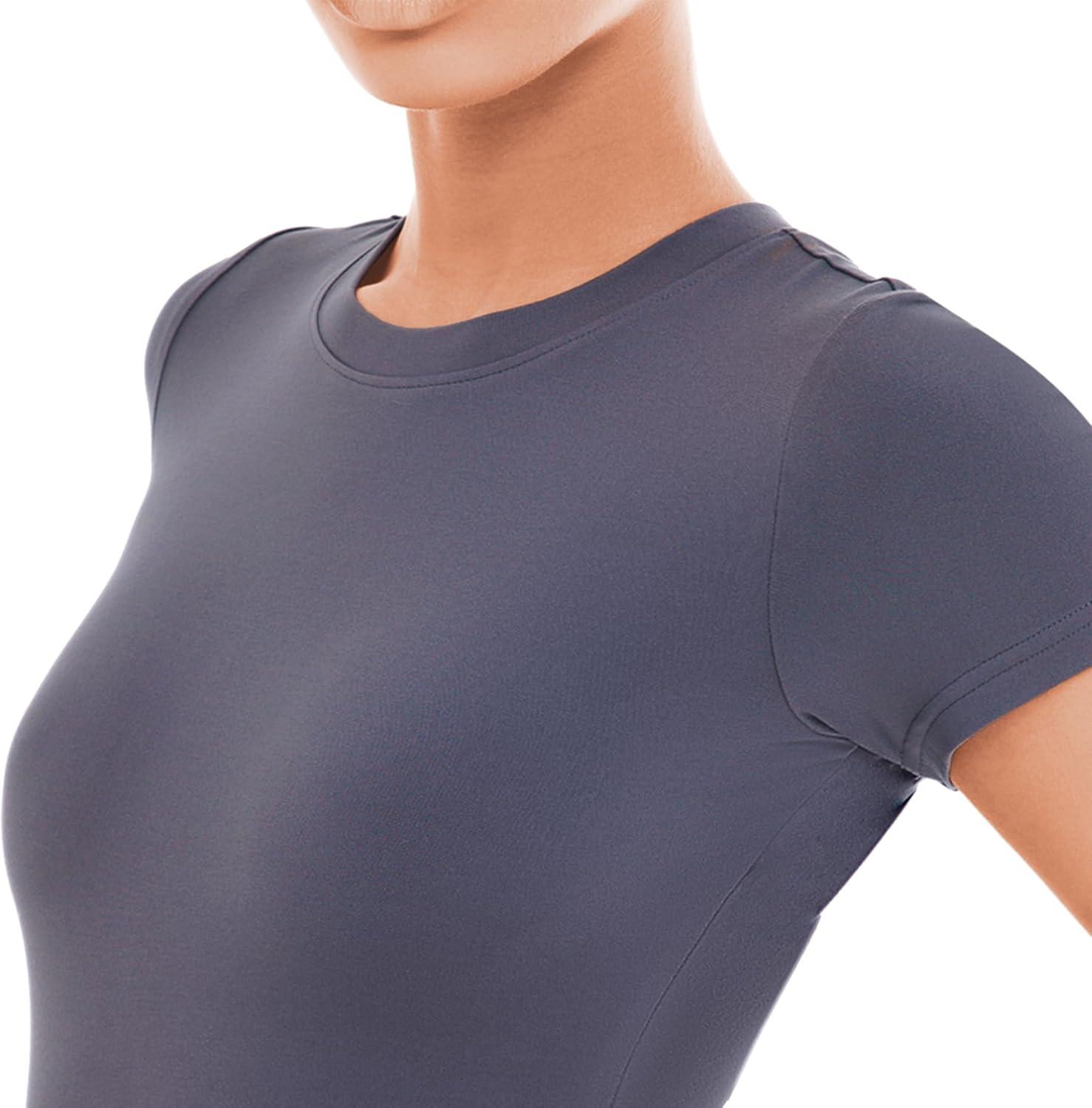 SINOPHANT Bodysuits for Women – Short Sleeve Round Neck Body Suit Stretchy Basic T Shirt Tops(Grey)