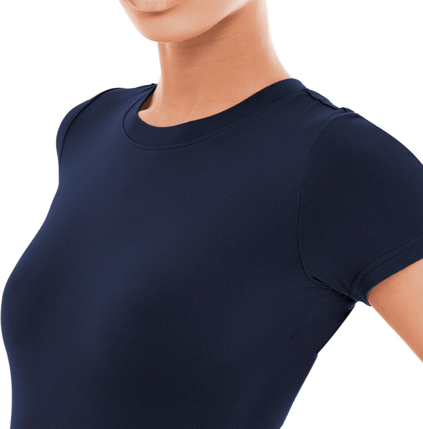 SINOPHANT Bodysuits for Women – Short Sleeve Round Neck Body Suit Stretchy Basic T Shirt Tops(Navy)