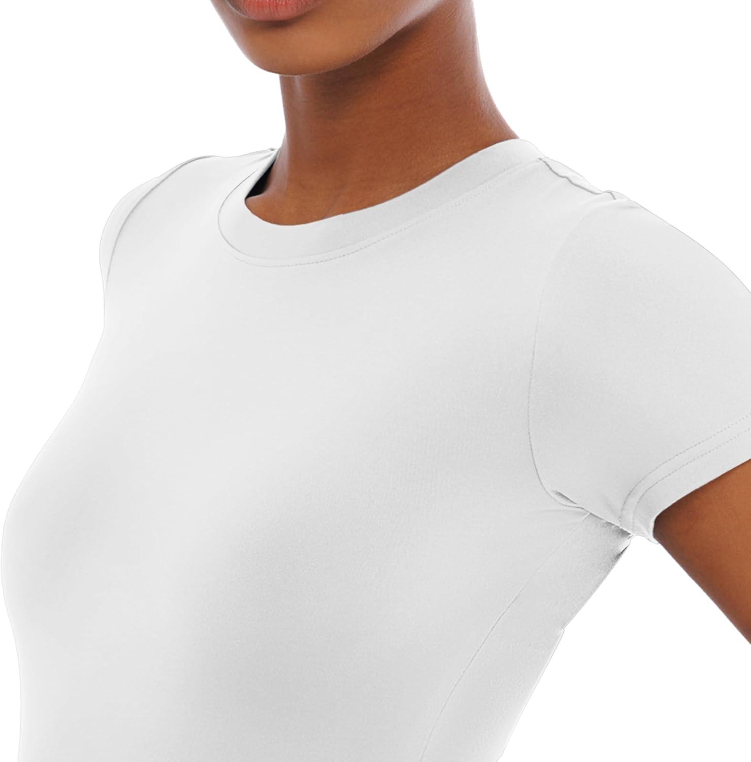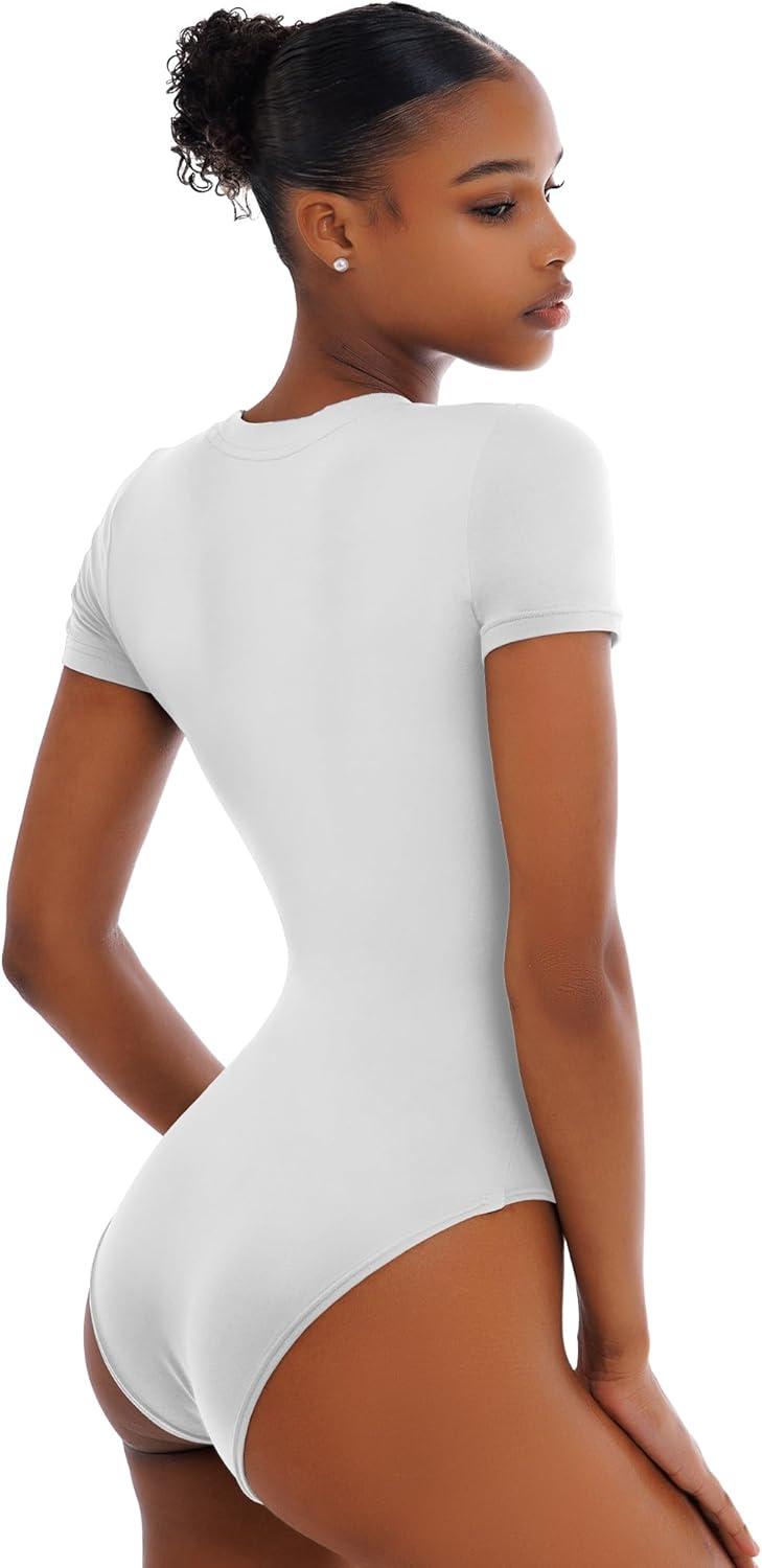SINOPHANT Bodysuits for Women – Short Sleeve Round Neck Body Suit Stretchy Basic T Shirt Tops(White)