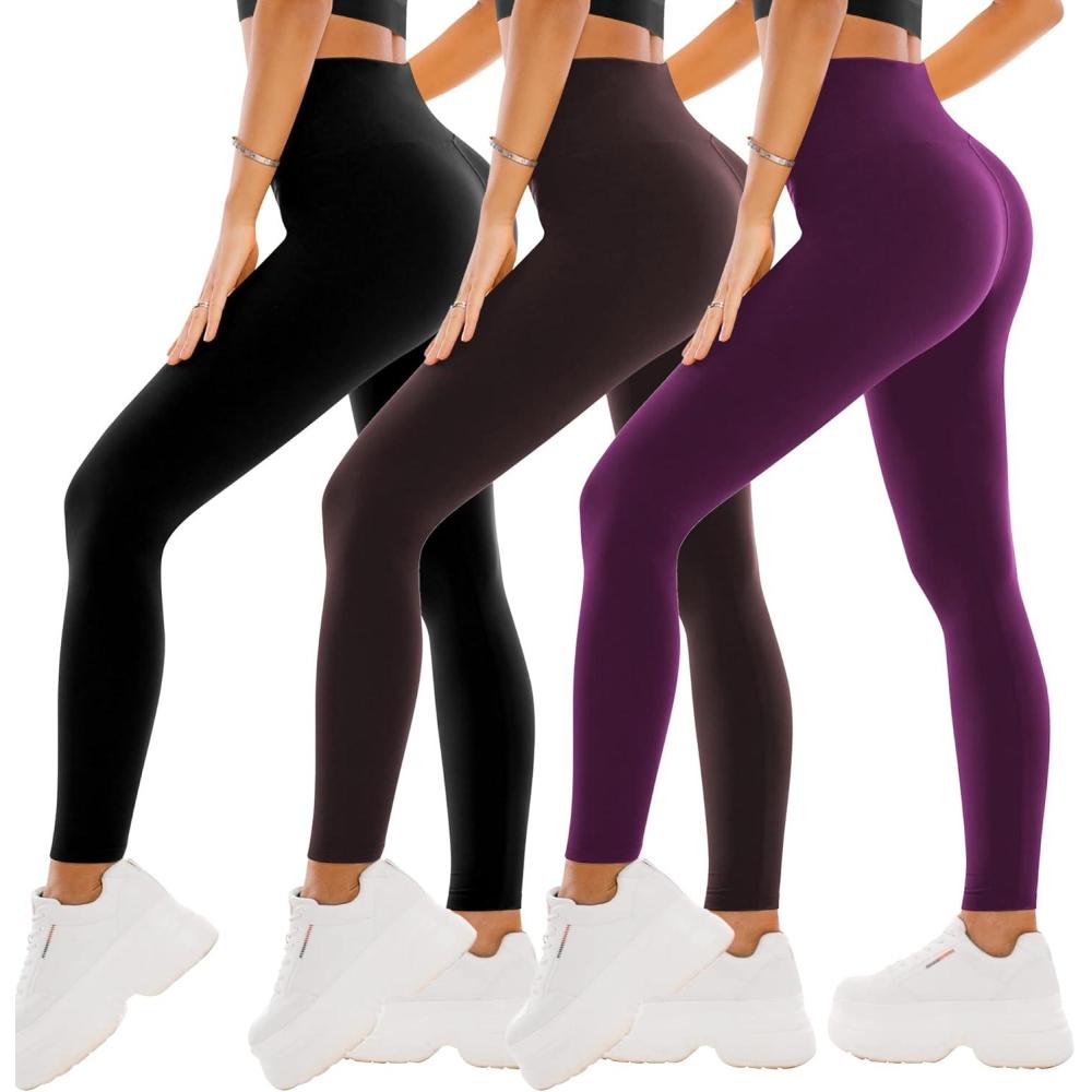 SINOPHANT 3 Pack Leggings for Women – High Waisted Buttery Soft Yoga Pants for Workout Athletic Sports(Black/Brown/Plum Purple)