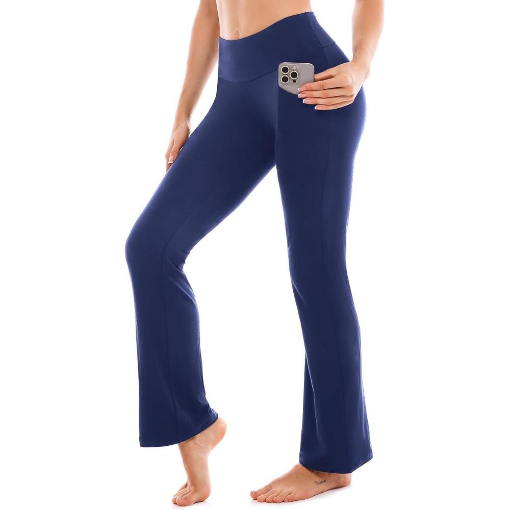 SINOPHANT Flare Leggings for Women with Pockets,High Waisted Tummy Control Bootcut Yoga Pants for Women Soft Bell Bottoms(Navy)