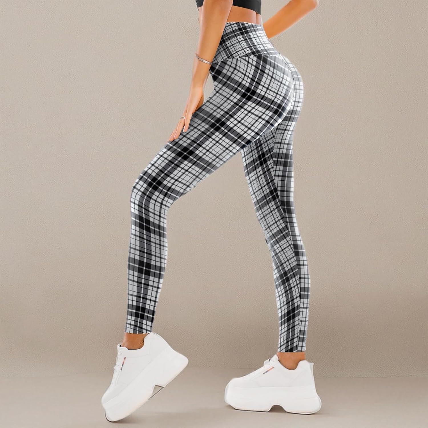 SINOPHANT High Waisted Leggings for Women – Full Length Capri Buttery Soft Yoga Pants for Workout Athletic(Black White Plaid)